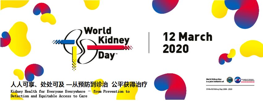 2020年世界肾脏日主题:人人可享、处处可及 —从预防到诊治 公平获得治疗,全球肾脏病的负担日益加重,在一直呼吁防大于治的今天,提高人们对肾脏疾病的认识,提前做好预防工作,敬请各位关注本平台3月12日院士领衔在线直播。